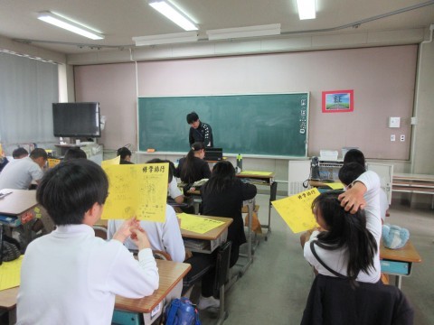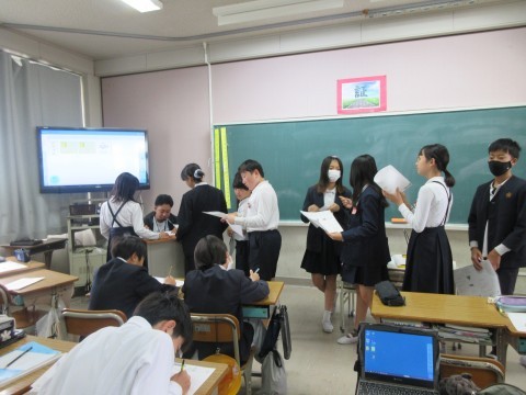 2組は修学旅行のしおりを配っています。いよいよ近づいてきましたね🚌!