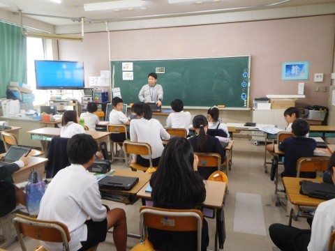 2組は外国語です。先生から、英語で「だれでしょうクイズ」を出してもらって
