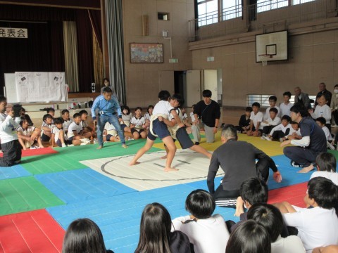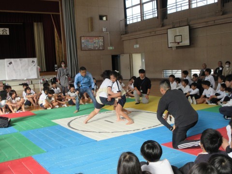 10/28 5年生 相撲大会福田場所 公開日 2025/10/28 更新日 2025/10/28 5年 午後からは高学年のすもう大会「福田場所」です。来賓の方も来てくださり,岸田連合自治会長さんから応援のメッセージもいただきました。いよいよスタートです!出場するみんなの顔も真剣そのもの!!応援にも熱が入ります!勝っても負けても大きな声援が送られました! +6