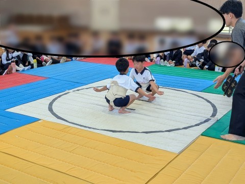 各クラスの予選を勝ち抜いた代表による,福田場所が開催されました。勝てば,学年の横綱になります。本回しをして,気合い十分です。みんなに見守られながらの試合で,緊張もあったと思いますが,みんなの声援もパワーにかえ,かっこよく諦めずに戦ってくれました!!とてもいい試合でした。代表になった人,とてもかっこいい戦いぶりでした!!お疲れ様!!そして,周りで一生懸命,お友だちを応援してくれた人,パワーを送ってくれてありがとう!!