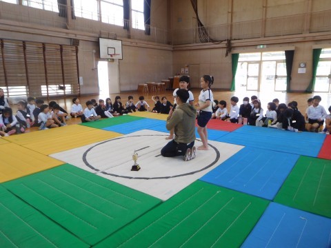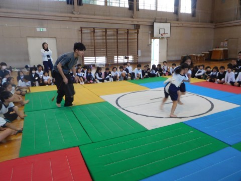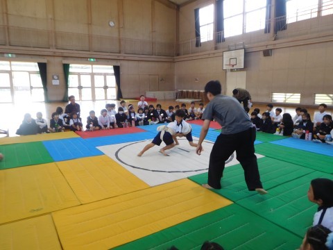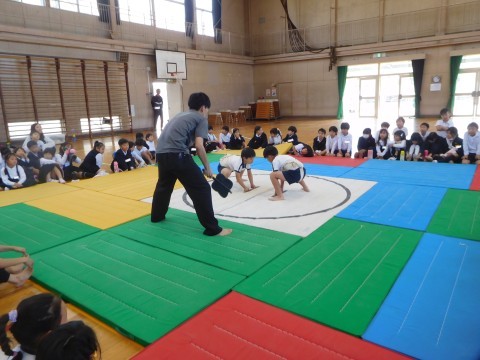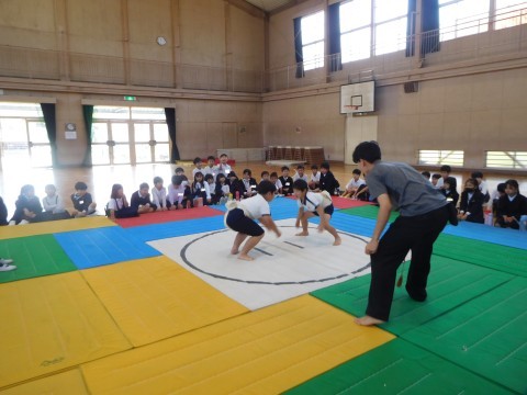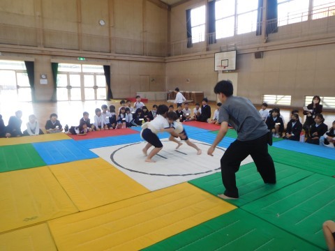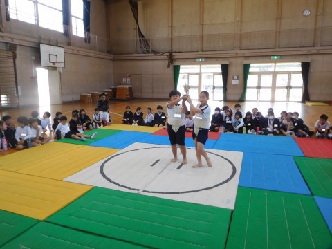 1年2年相撲大会福田場所 公開日 2025/10/28 更新日 2025/10/28 学校行事 1年生は初めての、そして2年生は二度目の相撲大会福田場所です。1年生は初めてとは思えないくらい見応えある取組み、2年生はさすが迫力のある取組みです。試合後は優勝者インタビューがありましたよ。優勝者が努力したことを参考にして、みんな来年も頑張ろう!! +7