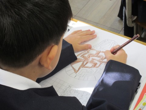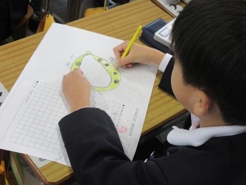 1組は生活科。学校で見つけた生き物について,「しらせたいな、見せたいな」のワークにまとめていました。絵の中のカマキリやカメが,今にも動き出しそうです🐢