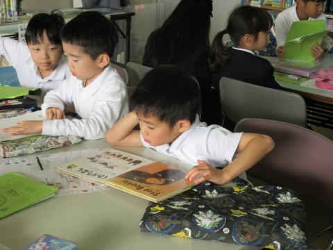 2組は図書。お気に入りの本を読んでいる子,読んだ本の感想をカードに詳しく書いている子,どの子も読書を楽しんでいます📖