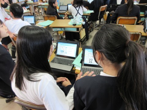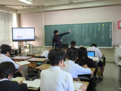1組は国語「柿山伏」の発表会です。教室を2つに分けて,同時進行していました!