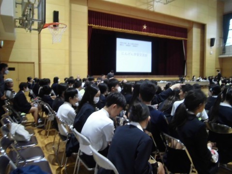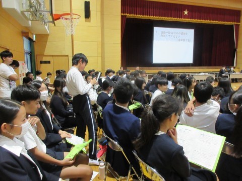 あいにくの天気でしたが,無事にんげん学習交流会を終えることができました。初めて三校が集まった場でしたが,人権について自分たちの考えをグループや全体に伝えることができました。