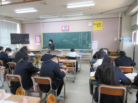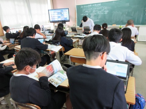 2組は理科。「火山の影響と地震の影響」を自分で調べていきます。教科書を見たり,パソコンで調べたり・・・自分に合った調べ方で学習を進めています。