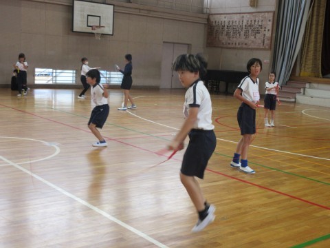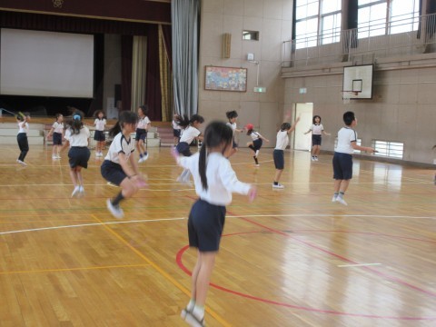 1組は,マット運動&縄跳びです。前半は,マットを使って「コロコロぴょんぴょんリレー」をしていたそうです。「1位やった~!!」とニコニコで教えてくれました☺ 後半は縄跳びで色々な跳び方に挑戦です。みんな上手~!!✨