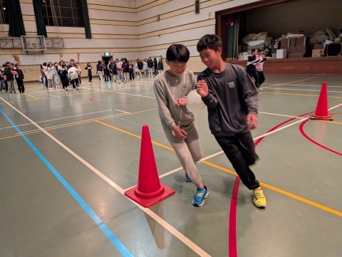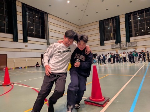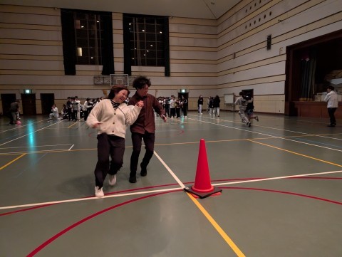 夜レクの最後はクラス対抗風船割りリレーです