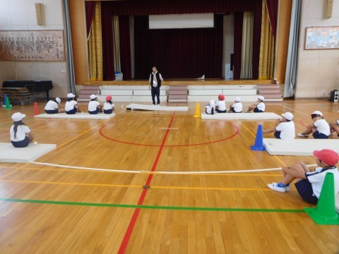 まずは前跳び、後ろ跳び、かけ足跳び等、基本の跳び方をしっかり思い出していました。