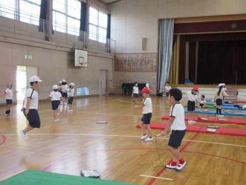 1組は体育。あやとびと二重跳びをクリアできた人は,こんな技もあるよと,先生が「はやぶさ」のお手本を見せてくれました✨さぁ挑戦です!!