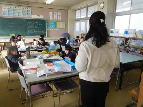 2組は図書です。読書ビンゴ最終日!さて、達成できるかな?
