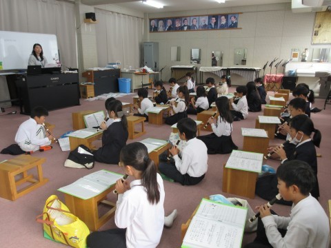 1組は音楽。2つのパートに分かれて,リコーダーで「オーラリー」を演奏中でした♪音の重なりがとってもきれい✨
