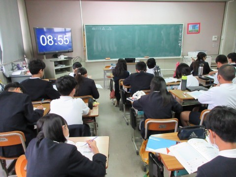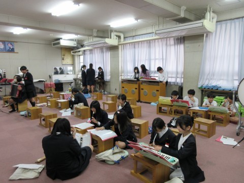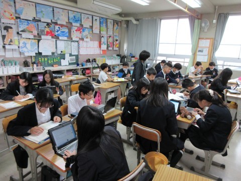 1組は国語「発見 日本文化のみりょく」の学習。班に分かれて日本の文化について調べていました。「だんじり」や「茶の湯」など,堺らしいものも出ていました🍵
