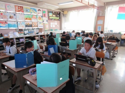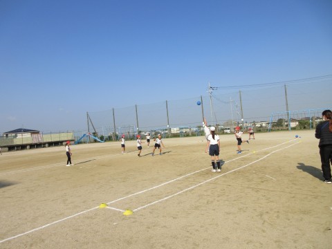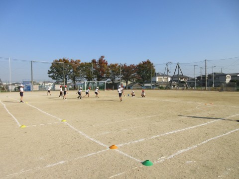 2組は体育。「ラインポートボール」です。遠くへ飛ばしたり,ドリブルで相手を交わしたり,それぞれのチームで工夫がされていました!