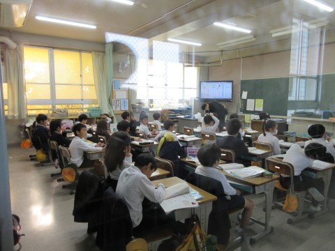 2組は図書です。先生の紙芝居の読み聞かせに、みんな聞き入っていましたよ。