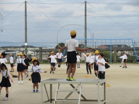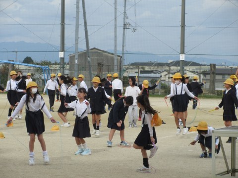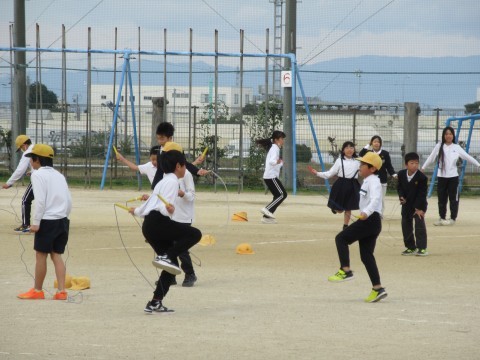 2年生が校外学習でいないため,今日は4・6年生のなわチャレです。リズムにのって,ひっかからずに跳び続けられる人が増えてきています♪お手本の体育委員会も頑張っています!!