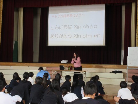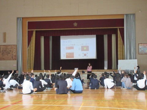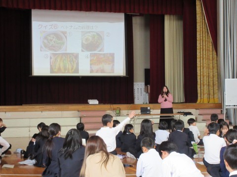国際理解の一環として,ベトナム人のゲストティーチャーの方にお話を聞かせて頂きました。ベトナムの言語や料理,日本との文化の違い,ベトナムの魅力などについてたくさん教えて頂きました☺ ベトナムには,「おもてなしの心」を大切にする親切な方が多いそうです☺ 先生もベトナムに行ってみたくなりました💕