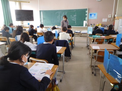 1組は社会です。「これからの食料生産」のテストをしています。