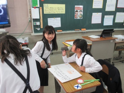 2組は総合。「防災」について3年生に伝えるためのリハーサル中でした。ペープサートやクイズなど,工夫を凝らした発表が素敵✨