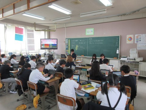 3組は理科。「秋の生き物の様子」について,カフートクイズで楽しくまとめの学習をしていました💻