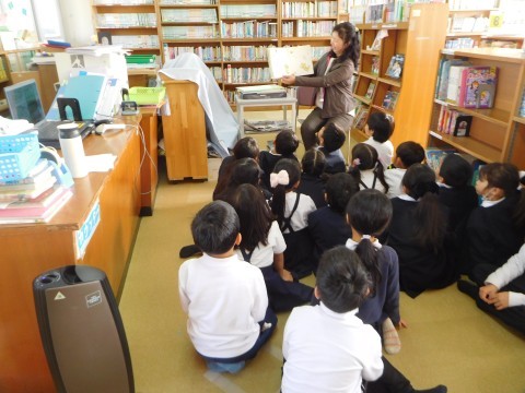 楽しいことば遊びがいっぱい出てくる本に、みんなクスクス笑っています。