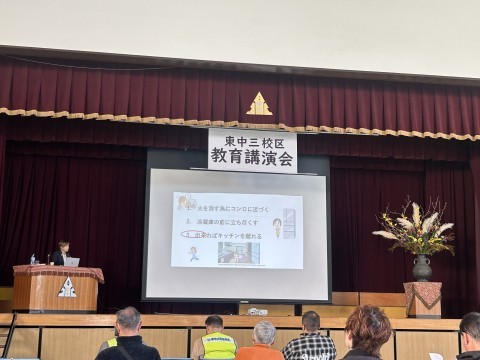泉ヶ丘東中学校で、教育講演会が開催されています。今年度は、暮らし防災アドバイザーの三原麻弓さんをお招きして、「子どもを守る!暮らしを守る!家庭で出来る防災と備蓄と収納セミナー」と題して講演してくださっています。