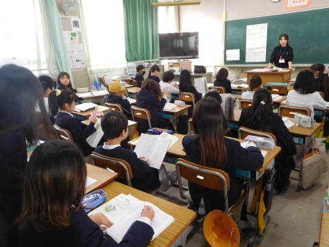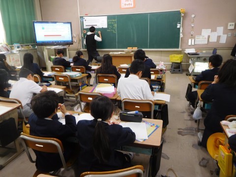 1組は国語です。ことわざの学習をしています。みんなで意味を確認しています。