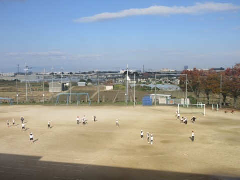 2組は運動場で体育です。体ほぐしのために鬼ごっこをしています。楽しそうです!