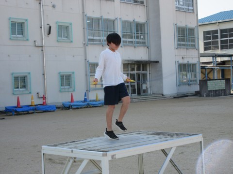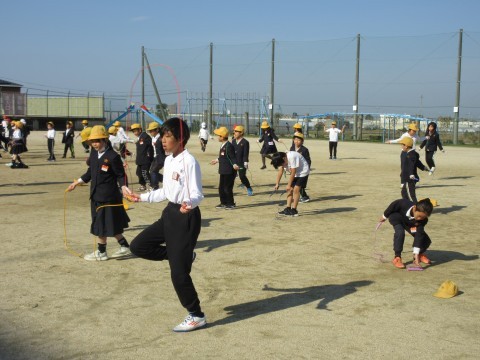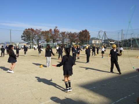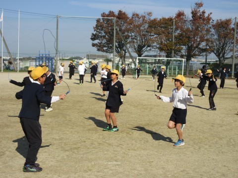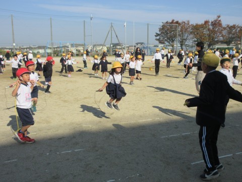 今日は1・3・5年生のなわとびチャレンジです。みんなどんどん上達しています!体育委員会のお手本もさすがです✨1年生も,お兄さんお姉さんのお手本を見ながら一生懸命頑張っていました☺