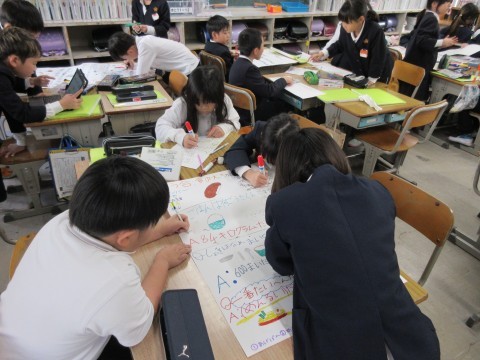 2組は総合。“食の大切さ”について2年生に伝えるための準備を進めていました。2年生にも伝わりやすいように工夫を凝らしています☺✨