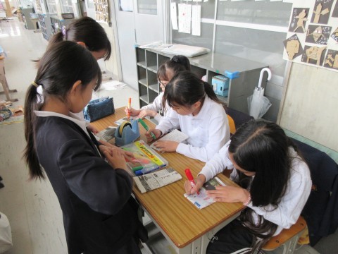 1組は総合。自分たちで作った防災グッズに飾りつけをして,より素敵なものに仕上げていました💕