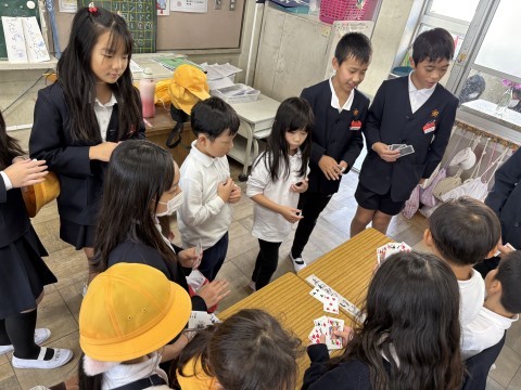 6年生が1年生のために遊びの計画をしてきてくれました!「おにごっこ」「だるまさんがころんだ」「たからさがし」「ばばぬき」などいろんな遊びを考えてくれました。最後、学級で「楽しかったひと?」と聞いたらみんな手を挙げてくれたね。次もいっしょに遊んでくれるかな?楽しみだね!