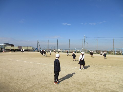 20分休みに体育委員会さんが企画した「体育委員VS一年生」の学年おにごっこが開催されました。1年生はケイドロです。ハンデとして6年生男子の体育委員会のお兄さんも,1年生と一緒に逃げてくれています。広い運動場を思いっきり駆け回ります!鬼にタッチされても,すぐにお友だちが助けに来てくれていました!体育委員会さんは想像以上に大変そうでした💦