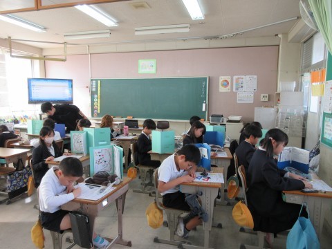 3組は算数のテスト中でした。みんな三角定規を使って丁寧に書いています!