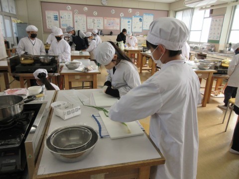 今日は5年3組が自分たちで田植えをし,稲刈りをしたお米を使った調理実習をしました。お味噌汁もいりこを使って出汁をとっていました。おいしくご飯が炊けたら,お米パーティの始まりです!