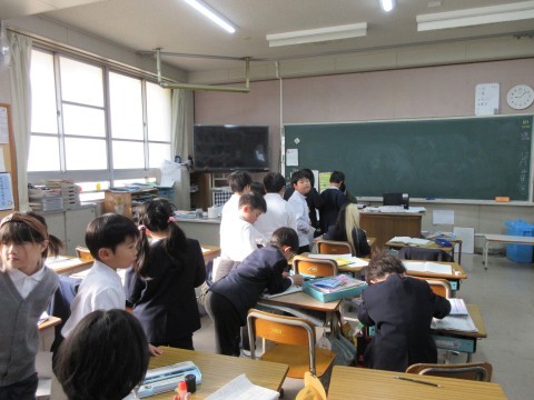1組は漢字の丸付けを先生にしてもらうために長い列ができていました。