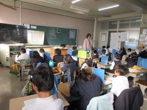 2組は算数。問題に合う式はどれか?プリントに取り組んでいます。