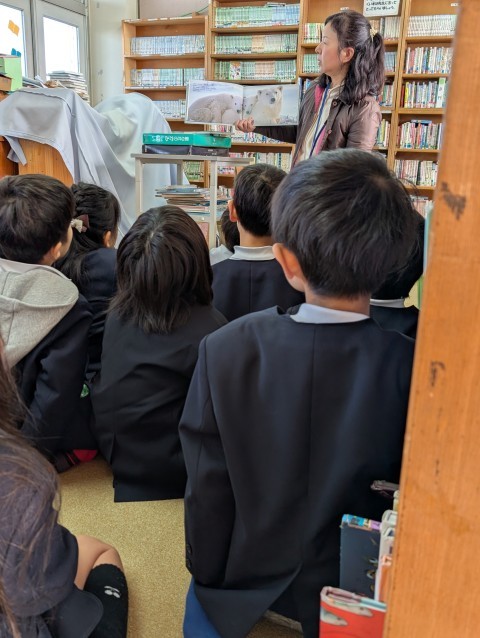 今日の図書の時間は,「しろくま」の絵本でした。氷の上で,エサの取り方などを教えてもらうそうです。冷たい氷の上で元気に過ごすための様子などを絵本から教えてもらいました。いよいよ2学期も終わりに近づいてきましたね。今日は,本の返却だけでしたが,本がたくさん返ってきていたので新しい本にも出会えたみたいです。「この本,かわいいから読んでみる!!」という意識で本を手に取ることも,いいきっかけですね!!来週は,冬休み用に借りることができるようです。また,探してみようね!!