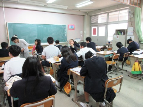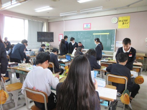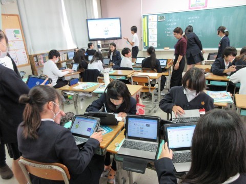 3組は外国語。おすすめの国を紹介する資料作りです。
