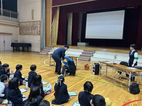 3年生は中堺警察署の方に来ていただき、警察の仕事について教えていただきました。