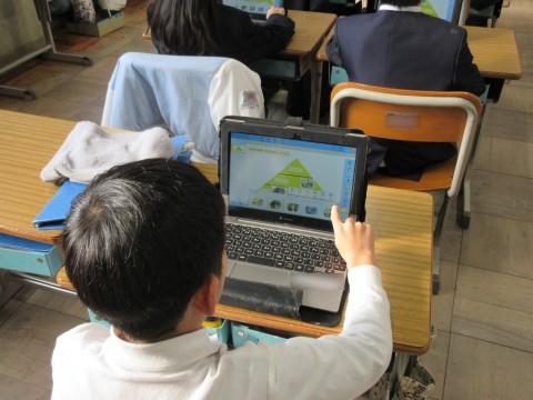 2組は,『たぬきの糸車』のお気に入りの場面を選んでいました。どの場面も素敵だね💕タブレットも上手に使えるようになっています☺