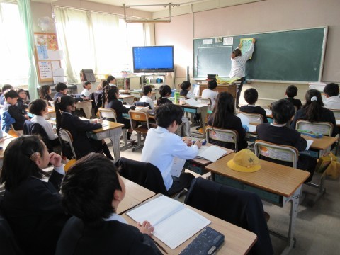 2組は算数。九九をみんなで大きな声で唱えた後,9の段の秘密を見つけていました。