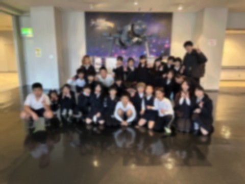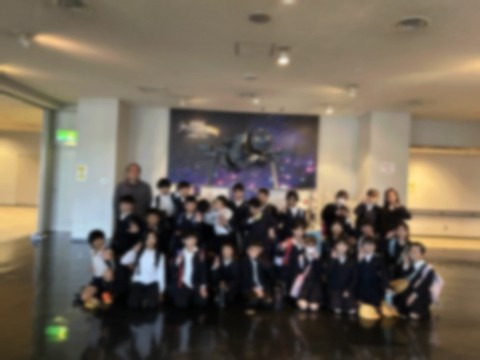 プラネタリウムに入る前にクラス写真を撮りました!今日は、全員出席の四年生です❣️