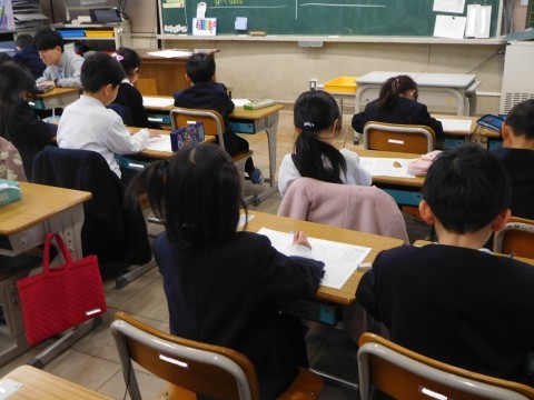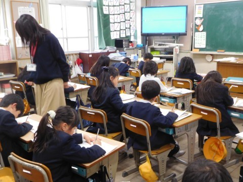 1組は書写です。字の形に気を付けながら、ていねいにプリントに取り組んでいます。