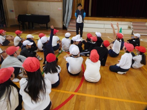 2組は体育です。跳び箱を上手に跳ぶためのポイントを、みんなで確認していましたよ。