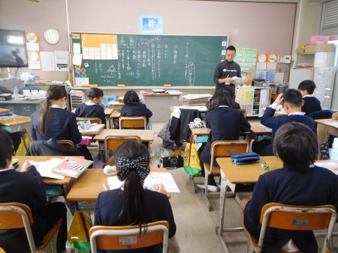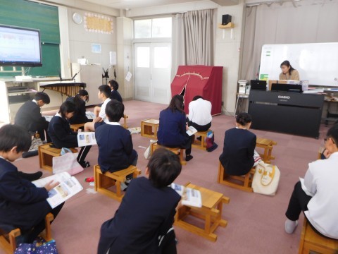 2組は音楽です。「冬げしき」を歌っています。難しい歌詞ですが、少しずつ音を取りながら歌うことができていましたよ。