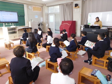 2組は音楽です。「歌おう声高く」を声の重なりに気を付けながら歌っていましたよ。