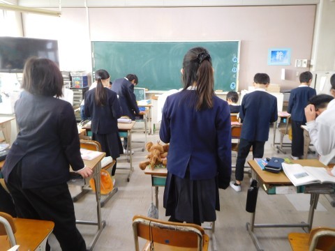 1組は理科です。先生お手製の復習プリントに取り組んでいます。