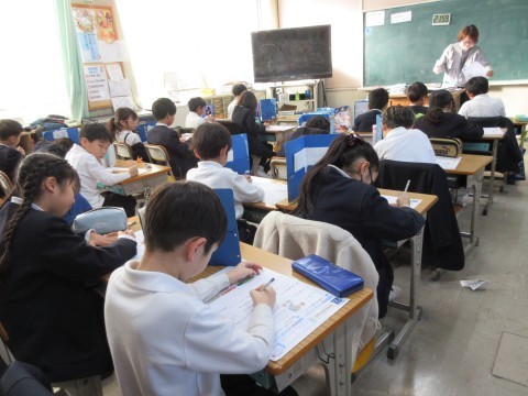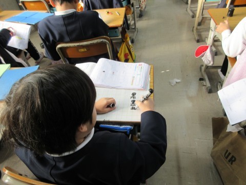 1組は漢字の練習。ホワイトボードを使って何度も練習していました。