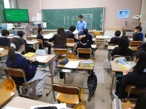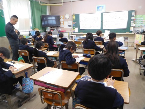 2組は国語です。今まで習った漢字の読みを確認しています。